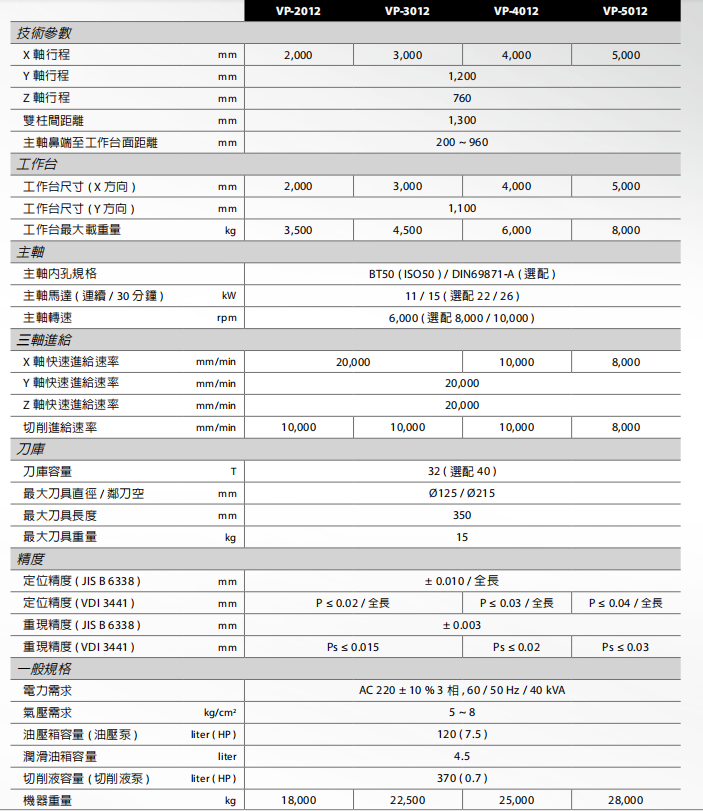 臺灣亞崴龍門加工中心五軸加工機vp 系列