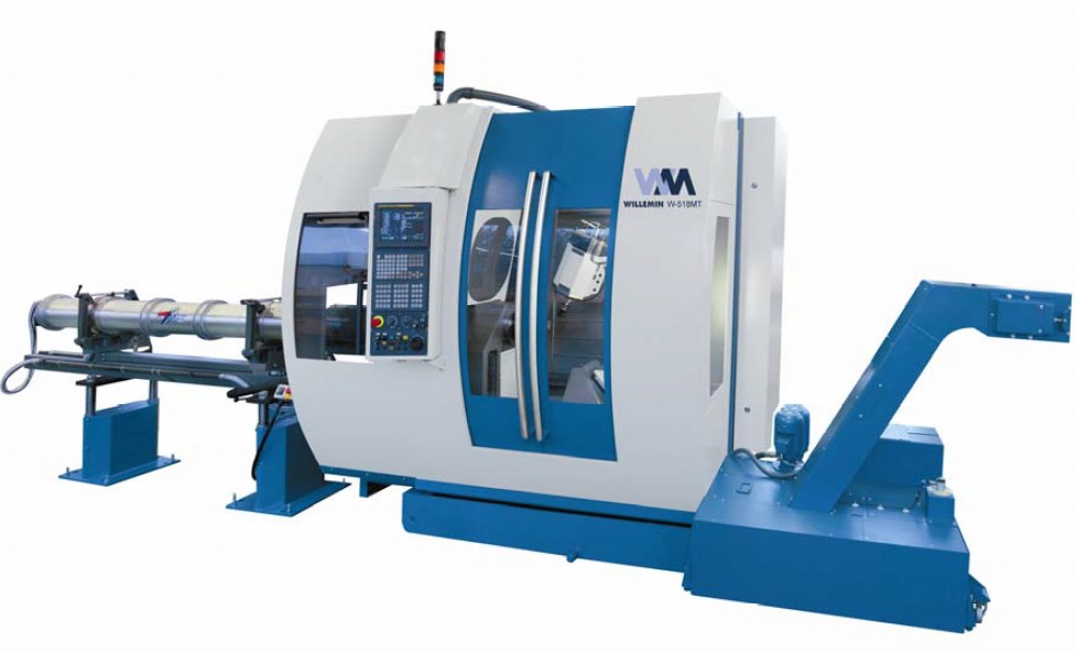 ■數(shù)字背面加工裝置: 518MT加工中心可配置一個(gè)數(shù)字背面加工裝置(U軸),帶有以下2個(gè)可選項(xiàng): ■單個(gè)0°-90°擺動單元:該單元可配置以下組件中的一項(xiàng): -液壓自動定心虎鉗 -可處于水平/垂直位置使用的銑/車加工副主軸(1-3000RPM) -支撐長工件的尾座 ■帶有3工位塔座的多功能背面加工單元: 該單元包括一個(gè)3工位塔座,機(jī)械鎖進(jìn)系統(tǒng)保障了高精密的塔座定位。該單元可配置以下3個(gè)工位: -可處于水平/垂直位置使用的銑/車加工副主軸(1-3000RPM)+液壓自動定心虎鉗 -副主軸(見上述)+尾座 -2個(gè)帶自動定心虎鉗的工位+尾座 ■自動系統(tǒng):進(jìn)給和操作臂 518MT加工中心可配備多種自動系統(tǒng),自主操作性極強(qiáng),尤其適用于棒給和零件的裝卸。通過一個(gè)棒料進(jìn)給裝置或一個(gè)棒料供應(yīng)系統(tǒng),棒料可裝入A軸分度盤。 可配備各種裝置的518MT加工中心,其超強(qiáng)的靈活性可以裝載長/短棒料,棒料的直徑可達(dá)65mm,各種裝卸系統(tǒng)可用于卸載成品零件。為了進(jìn)一步加強(qiáng)機(jī)床 的自動性,威力銘-馬科黛爾公司可在機(jī)床上配備一支萬能操作臂,用于裝載和移動零件至/從庫區(qū),也可用于卸載棒料邊角料。威力銘-馬科黛爾公司可根據(jù)客戶 需求提供特殊的解決方案。 |